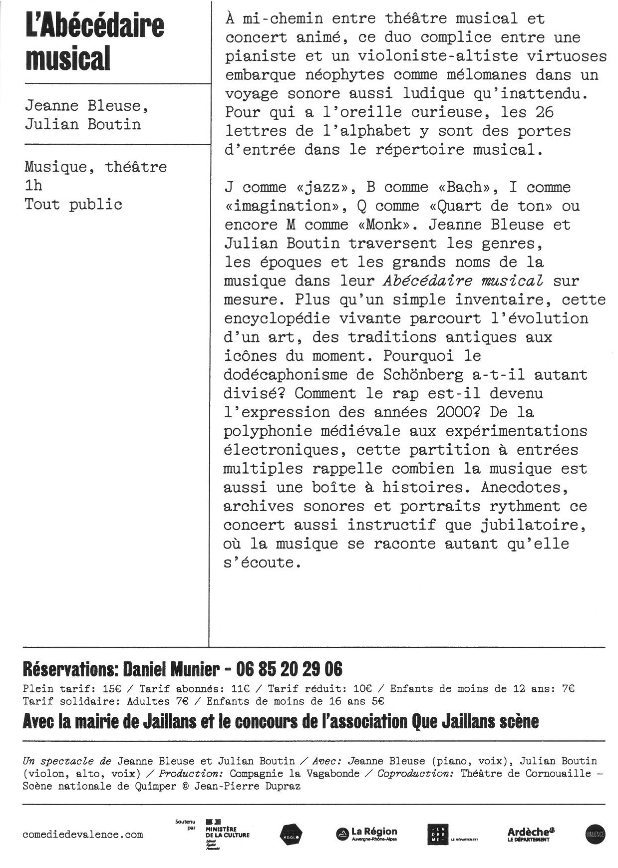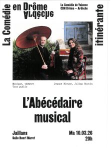 La comédie de Valence présente “L’ Abécédaire musical” mardi 10 mars 2026 à la salle des fêtes de Jaillans.