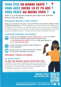 Pour plus de renseignements : Accueil | Etablissement francais du sang (sante.fr)